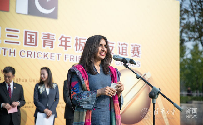 清华新闻网10月28日电(记者 张静 摄影 李派)为促进中国、阿富汗、巴基斯坦三国青年的交流,增进三国人民的友谊,10月23日下午,中国-阿富汗-巴基斯坦三国青年板球友谊赛在清华大学紫荆操场开幕。来自清华板球队的选手与来自阿富汗、巴基斯坦的青年选手共计30余人参加了本次比赛。校务委员会副主任、校体委主任史宗恺,巴基斯坦驻华大使馆副馆长兼公使穆塔兹·扎赫拉·俾路支(Mumtaz Zahra Baloch),阿富汗驻华大使馆公使衔参赞兼代办穆萨·阿雷菲(Musa Arefi),体育总局小球中心副主任赵力平,外交部亚洲司南亚处处长徐航天等出席开幕式。