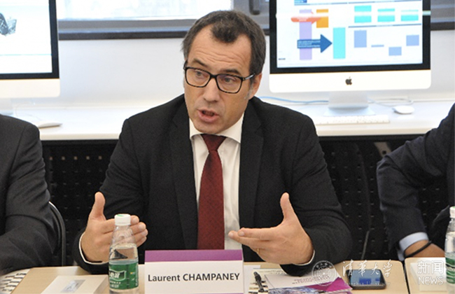 罗兰·尚巴内对清华大学在国际化发展方面取得的成果表示祝贺。他简要介绍了法国国立高等工程技术学校近年来学科建设和国际合作的情况。希望和清华大学共同探讨在智能制造、技术创新和继续教育等领域的进一步合作。