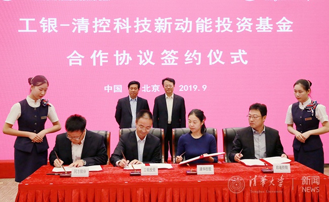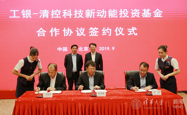 在胡浩、王希勤的见证下,工行、工银金融资产投资公司、清华控股三方代表签署了《工银-清控科技新动能投资基金合作协议》。