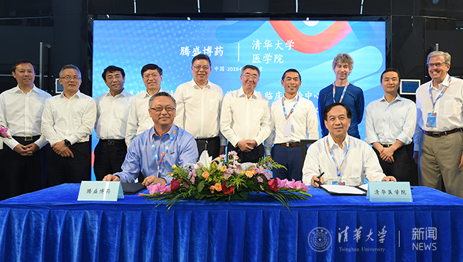 清华大学医学院院长董晨和腾盛博药副总裁王志岩签署合作协议