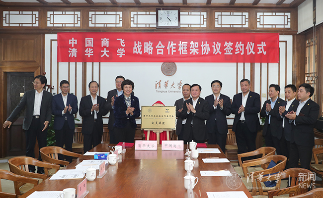 随后,谭万庚与尤政代表双方签署中国商飞与清华大学战略合作协议。贺东风与陈旭共同为中国商飞加入清华大学企业合作委员会成员单位揭牌。