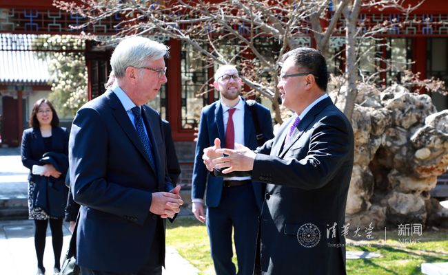 清华新闻网3月24日电(记者 李含 摄影 李派 赵青松)3月24日,剑桥大学校长杜思齐(Stephen Toope)一行访问清华大学。校长邱勇在工字厅与杜思齐教授举行会谈,就继续推进两校合作进行了深入交流。副校长、教务长杨斌参加会见。