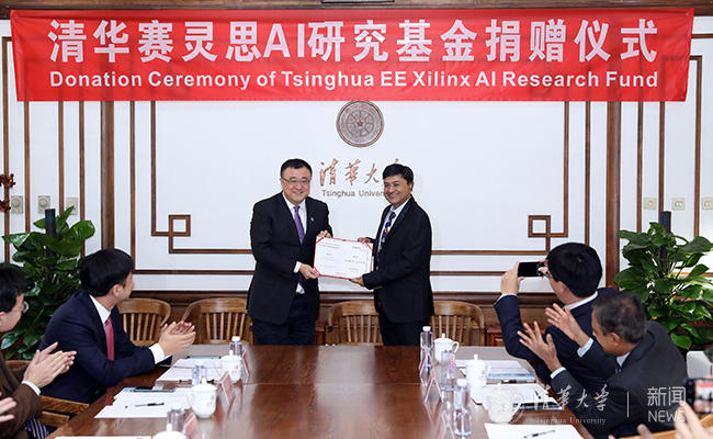 赛灵思首席工程师斯里达尔·克里希那穆西(Sridhar Krishnamurthy)、人工智能全球产品总监刘竞秀、人工智能软件研发总监罗洪、大中华区企业及市场传播经理张俊伟以及清华大学教育基金会、电子系相关负责人参加捐赠仪式。