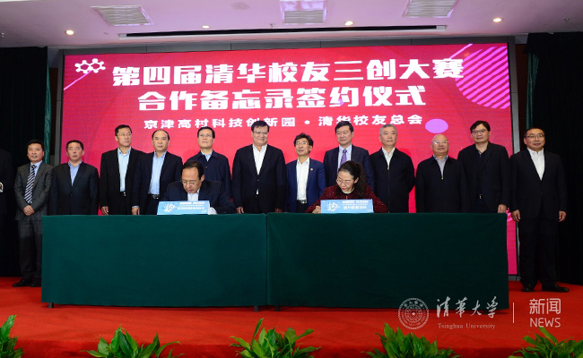 会议中,天津市和清华大学进行了两个项目的签约仪式。天津市卫生和计生委卫计委、清华大学临床医学院与天津市武清区人民政府进行了健康医疗大数据“医工结合”合作备忘录签约,京津高村科技创新园与清华校友总会进行了第四届清华校友三创大赛合作备忘录签约。