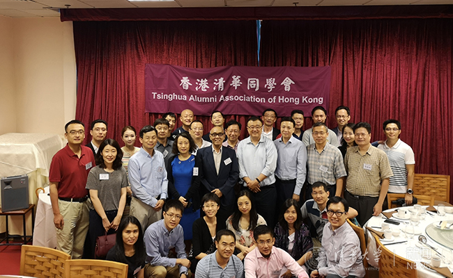 杨斌一行与参加香港清华同学会聚会活动的校友合影