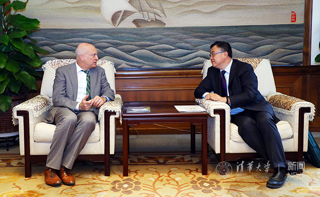 杨斌对叶翰教授的到访表示欢迎,并简要介绍了清华的全球战略与重要国际合作举措,包括全球创新学院、中意设计创新基地的创建以及深圳国际研究生院的奠基。杨斌表示,今年是清华大学发布“全球战略”的第三年,学校更加重视学生的国际化培养及与国际合作伙伴的交流。慕尼黑大学是欧洲历史最悠久也是最著名的大学之一,此次两校首次签署校级合作协议,这对两校来说是突破性的进展。希望双方继续推动教师互访和学生交换,在更多领域开展科研合作。