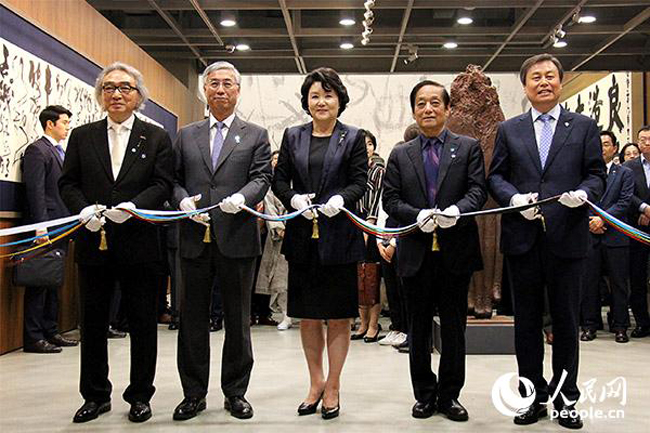 6月5日,韩国首尔艺术殿堂书法博物馆,中韩人士共同为“美林的世界在首尔”展览开幕剪彩。 陈尚文 摄 来源:人民网