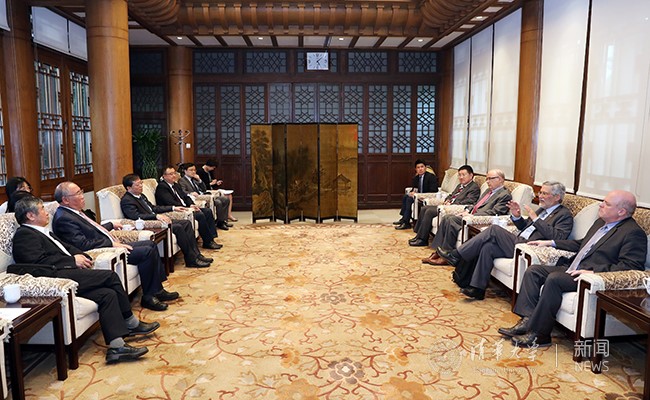 会谈中,邱勇对约翰·霍尔德伦一行到访清华表示欢迎,并祝贺霍尔德伦教授获得“清华大学杰出访问教授”的荣誉称号。邱勇表示,中国政府高度重视生态文明建设和绿色低碳发展,清华成立气候变化与可持续发展研究院,并聘请多年来在国际国内推动气候环境工作方面做出卓越成就、在促成《巴黎协定》的签署做出了重要贡献的杰出校友解振华先生担任院长,这是清华积极响应国家发展战略、推动生态文明建设和绿色低碳发展的重要举措。