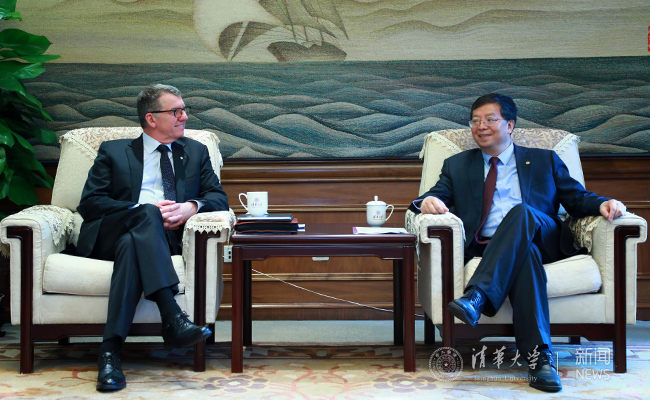 会谈中,邱勇对杜文彬教授再次到访表示欢迎。邱勇说,能源和环境问题是全世界面临的共同问题,进入新的发展阶段后,中国高度重视开发清洁能源和改善环境质量,清华大学和阿尔伯塔大学是中加两国的顶尖高校,有责任在应对人类面临的共同挑战方面提供更好的解决方案,作出应有的贡献。邱勇表示,清华刚刚庆祝了107周年校庆,在新百年的发展中,清华将以更加开放的姿态开展与世界各国优秀高校的合作。清华重视发展与阿尔伯塔大学的交流合作,此次未来能源与环境联合研究中心的揭牌是两校合作历史上的里程碑,希望未来和阿尔伯塔大学继续展开多层次、高水平的交流与合作,不断拓展新的合作领域,充实和巩固双方业已建立的良好合作关系。