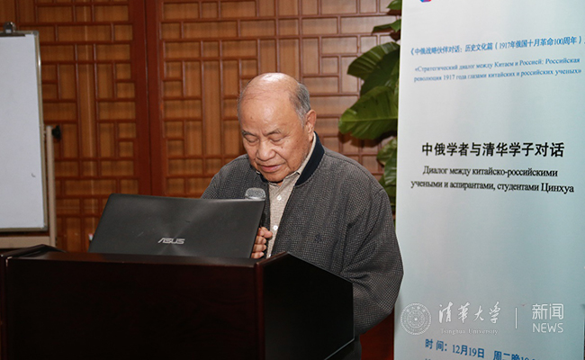 清华新闻网12月25日电 (通讯员 李豪)12月19日,“中俄学者与清华学子对话”活动在清华大学举办。清华大学原党委副书记、清华大学中俄战略合作研究所学术委员会主席胡显章,清华大学原副校长、清华大学中俄战略合作研究所学术委员会主席倪维斗,圣彼得堡国立技术大学人文学院院长纳·伊·阿尔玛左娃,圣彼得堡国立技术大学人文学院历史系主任谢·弗·库利克,圣彼得堡国立技术大学人文学院教授、圣彼得堡史学会首席专家斯·鲍·乌里扬诺娃等中俄学者,清华大学学生马克思主义学习研究协会(学生TMS协会)代表、清华师生100余人参加对话活动。