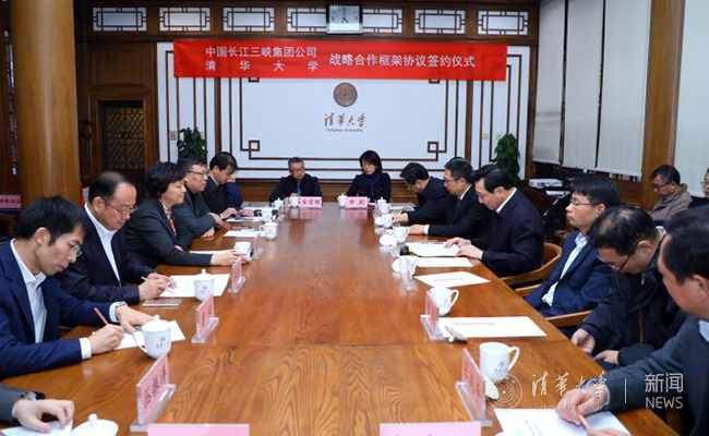 清华新闻网12月18日电(记者 金若沙 林萍)12月15日下午,清华大学与中国长江三峡集团公司(简称:三峡集团)战略合作框架协议签约仪式在工字厅举行。清华大学党委书记陈旭、副校长尤政,三峡集团党组书记、董事长卢纯,党组成员、副总经理樊启祥等出席仪式,并为集团加入清华大学与企业合作委员会揭牌。尤政与樊启祥代表双方签订《中国长江三峡集团公司-清华大学战略合作框架协议》。