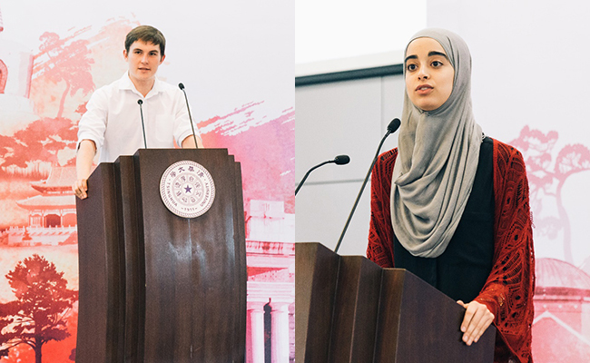 最后,两位国际学生代表登台发言。来自英国牛津大学的马修·帕尔默(Matthew Palmer)说,“感知中国·清华印象”是一次奇妙之旅,我很喜欢中国历史文化,清华大学给予了世界各国的青年共同来研讨中国文化的机会,这让我倍感珍惜。来自荷兰莱顿大学的伊曼埃尔·莫拉比(Imane El Morabit)首先用中文对现场的学生与嘉宾问好,然后表示此次清华经历让她更加深刻地理解了文明多样性的美好,也让她对中国的传统文化产生了更深刻的认知,最后用中文表达了对清华大学的感谢。