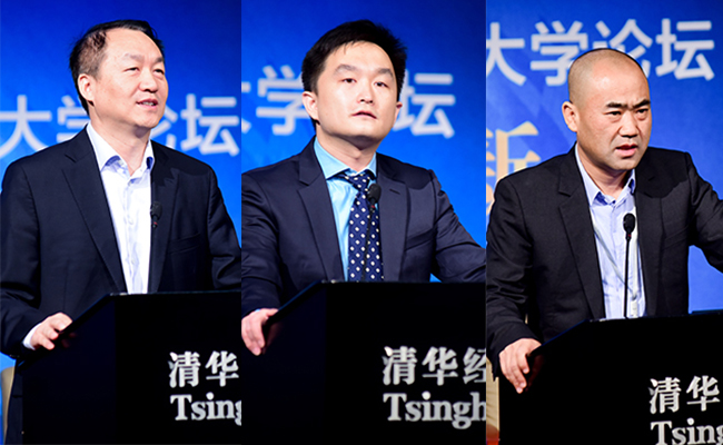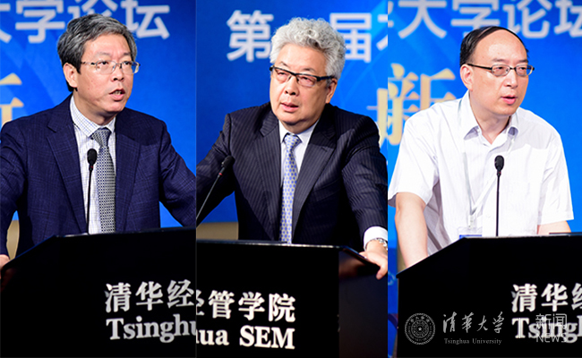 左起:清华经管学院不良资产研究中心主任朱玉杰、原国家开发银行副行长高坚、中国华融资产管理股份有限公司副总裁王文杰先后作主旨演讲。