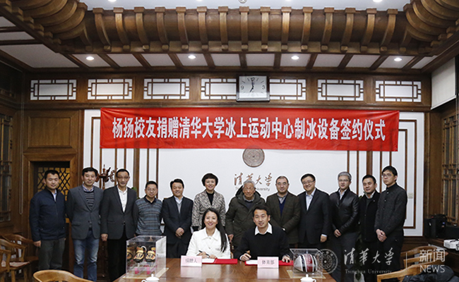 杨扬向清华大学冰上运动中心捐赠制冰设备