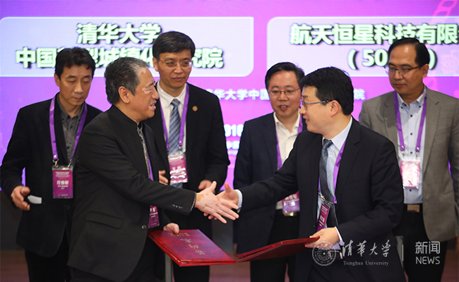 清华大学中国新型城镇化研究院执行副院长尹稚教授与航天恒星科技有限公司副总经理何大海签署合作协议。