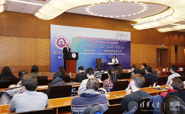 授予仪式后,拉斐尔·莱夫为清华师生作了题为“创造未来:二十一世纪的研究型大学”的演讲。