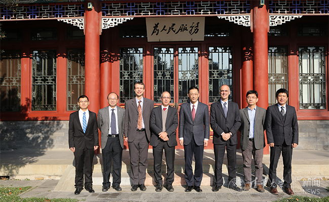 施一公与奥利维耶·莱斯博一行在工字厅合影留念。 杨艳斌 摄