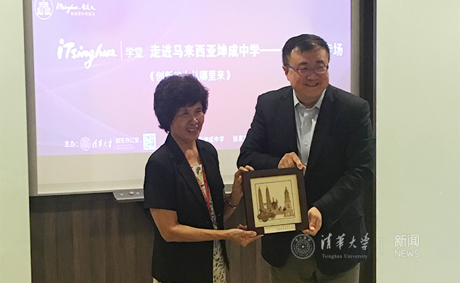随后,清华大学副校长杨斌以“综合”一词为主线做了主题报告,介绍了清华大学在教育理念、人才选拔、学生培养等领域的综合性特点。次日,“iTsinghua学堂——名师大家进中学”走进马来西亚坤成中学,杨斌以创新人才培养为题做了报告,这是iTsinghua学堂项目自今年4月份启动以来首次走出国门,开启国际巡讲。