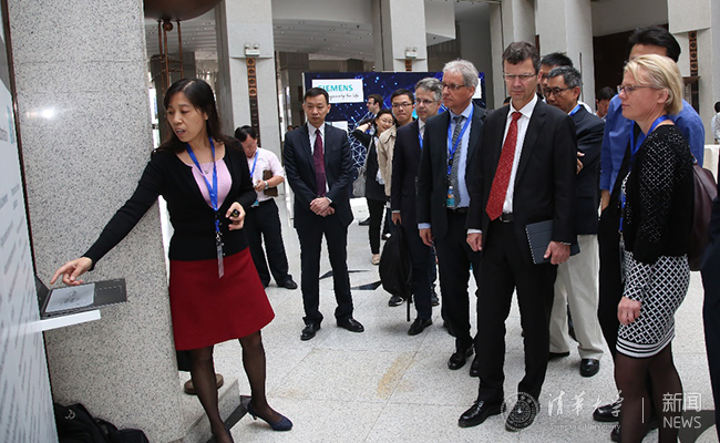 开幕式结束后,高斯博士、西门子公司大学关系负责人娜塔莎·埃克尔(Natascha Eckert)博士、西门子中国研究院院长朱骁洵博士,以及西门子各业务集团的负责人、专家和清华大学的研究人员参观了在主楼的展览。清华-西门子知识交流中心(CKI)正在运行及拟启动的20个科研合作项目参与了展览。