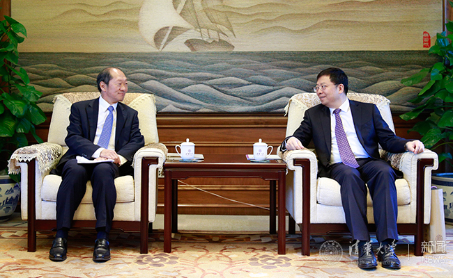 邱勇与胜茂夫会谈现场。记者 张宇 摄