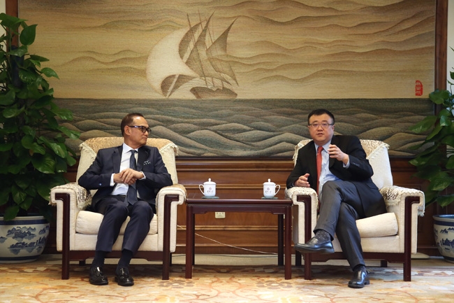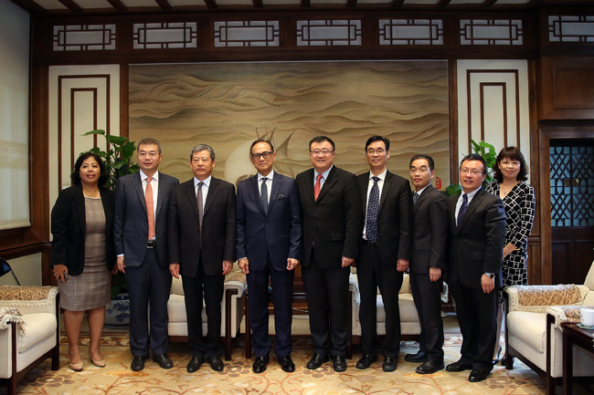 清华新闻网7月26日电(通讯员 宋小岑) 7月25日上午,印尼工商会荣誉主席苏里约、中国民生投资股份有限公司(“中民投”)总裁李怀珍先生访问我校,杨斌副校长在工字厅西厅会见了苏里约、李怀珍一行。