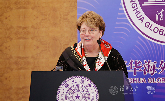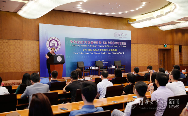 讲座伊始,苏利文首先代表弗吉尼亚大学,向清华大学105周年表示祝贺。她谈到,清华大学是在变革中的世界培养领导力的著名学府,在清华大学谈论领导力问题非常合适。