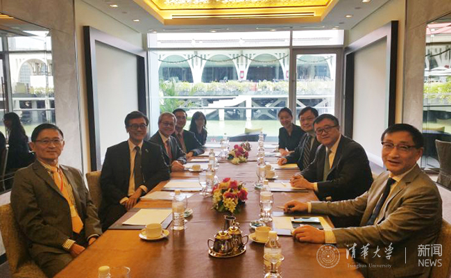 清华大学与新加坡国立大学双方人员进行会谈交流。