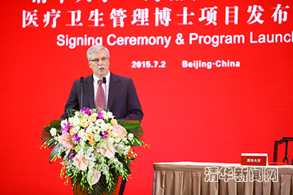 清华新闻网7月3日电 7月2日,“清华大学-约翰霍普金斯大学医疗卫生管理博士项目”发布仪式暨“2015首都医疗论坛”在鸟巢文化中心举行。清华大学医院管理研究院、美国约翰霍普金斯大学彭博公共卫生学院、首都医疗集团三方共同签订了在医疗卫生管理领域合作办学的协议,拟开办“医疗卫生管理博士学位项目”。