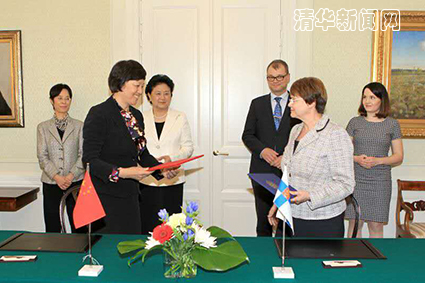 在国务院副总理刘延东和芬兰新任总理西皮莱的见证下,清华大学与芬兰阿尔托大学续签校际合作协议。新华社记者 李骥志 摄