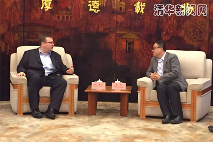 讲座开始前,清华大学副校长杨斌在主楼会见了霍夫曼一行。杨斌对霍夫曼的到访表示欢迎,并对霍夫曼先生创业成功表示赞赏。他介绍了清华大学的传统精神,以及学校在推动学生创新创业方面的教育教学实践。双方就未来合作方向进行了交流。