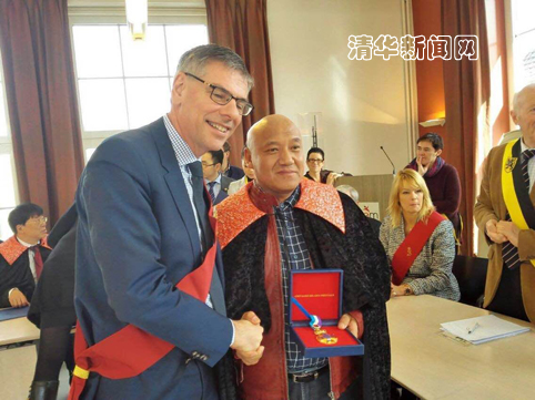 清华新闻网4月9日电 比利时时间4月2日,国际和平艺术家联盟在比利时南怀仁故乡皮特姆小镇市政厅举行东方艺术骑士勋章授勋仪式,清华大学美术学院绘画系主任郑艺教授获此殊荣。比利时国会议员安科·范(Anke Van Dermeersch)为郑艺教授颁发东方艺术骑士勋章,以表彰他在促进东西方文化交流方面做出的杰出贡献。