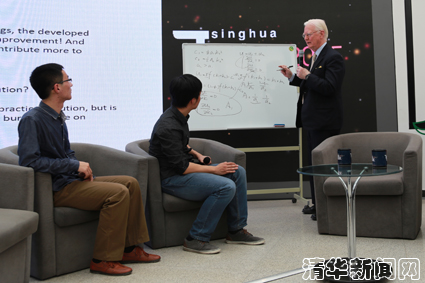 演讲之后,莫里斯与清华学子展开对话。来自经管学院、环境学院、数理基科班、五道口金融学院和建筑学院的五位同学分别从环境税的政治可行性、发达国家是否应该为环境问题承担更多责任、碳排放税和碳排放交易、政府激励机制、绿色建筑五个角度出发与莫里斯进行学术交流。