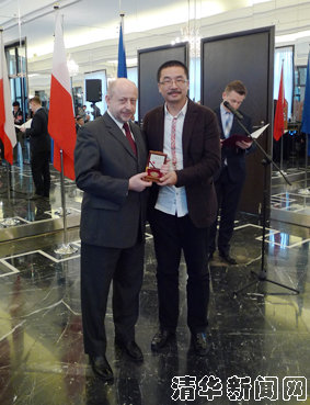 清华新闻网12月17日电 12月11日,中波建交65周年纪念勋章授勋庆典在波兰驻华大使馆举行。美术学院苏丹教授,因其近年来在中波艺术合作领域的突出贡献,获得波兰驻华大使馆颁发的纪念勋章。