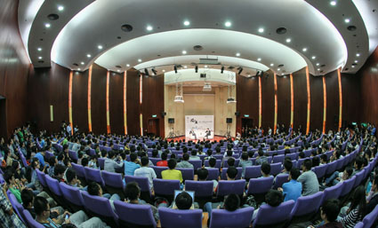 随后,纳德拉先生来到经济管理学院报告厅,做客清华论坛,在微软全球执行副总裁沈向洋博士的陪同下,与近500名清华师生进行了交流。