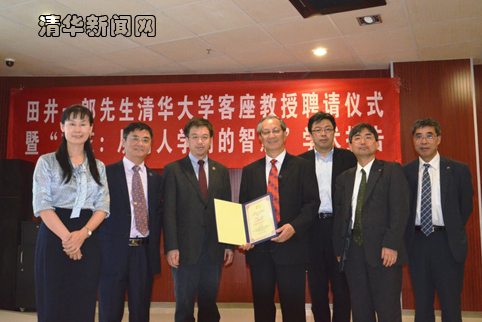 清华新闻网6月5日电(通讯员 宗弟元 王思齐))5月29日下午,东芝集团常任顾问田井一郎先生清华大学客座教授聘任仪式暨“东芝:从前人学到的智慧”学术报告会在文科图书馆未央厅举行。校党委副书记史宗恺向田井一郎先生颁发了清华大学客座教授聘书。