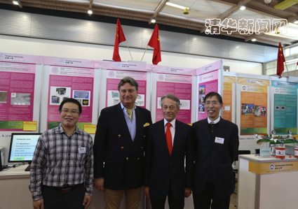 图为清华参展代表和组委会官员合影。左起:范永生,大会裁判委员会主席David Taji,大会组委会主席Jean- Luc Vincent,董新洲。