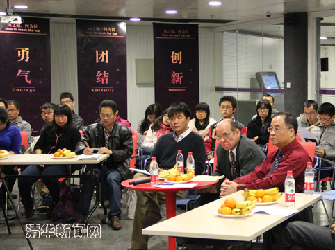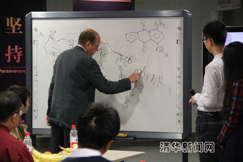 长达两个小时的时间里,学术大师夏普莱斯丝毫没有架子,他与清华师生侃侃而谈,大家一起讨论着共同关心的科学问题,现场学术讨论的气氛十分浓厚。这里举办的正是清华大学“巅峰对话”之挑战大师暨化学化工学术沙龙。