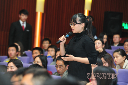 演讲结束后,卢英德女士与同学们进行了互动,一一回答了学生关于公民责任、女性在商业中的角色,工作与生活的平衡等诸多问题。在回答女性在当今社会中的地位、角色问题时,她认为在当今女性时代,每年全世界50%以上的学士学位由女性获得,50%以上的决策由女性做出。但女性之间应当建立组织,更多互相忠告、互相帮助。在回答如今的自己是谁时说,“我不管你在外面是谁,把你的皇冠留在车库里。在这家里你首先是妻子是母亲,不要忘了自己的角色。”卢英德女士在百事董事长兼CEO、妻子、母亲、女儿等不同角色中不停转换,一直奋斗着。