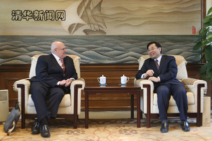 清华新闻网4月25日电(记者 李含)4月24日,美国前副国务卿理查德·阿米蒂奇先生访问清华大学。清华大学校务委员会主任胡和平会见了阿米蒂奇先生一行。