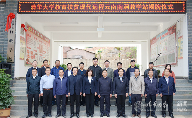 培训前,中共南涧县委书记吉向阳,县委副书记、县长王绍基;清华大学定点帮扶南涧挂职干部、南涧县副县长金峰,驻村第一书记沈正波,清华大学继续教育学院党委副书记张文雪等参加了清华大学教育扶贫远程云南南涧教学站在县委党校的揭牌仪式。