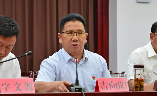 吉向阳在讲话中详细介绍了南涧县县情和脱贫攻坚情况,对清华大学五年来的帮扶工作给予了高度肯定,并希望能继续在特色产业发展和基础教育提升等方面开展更深入的帮扶工作。