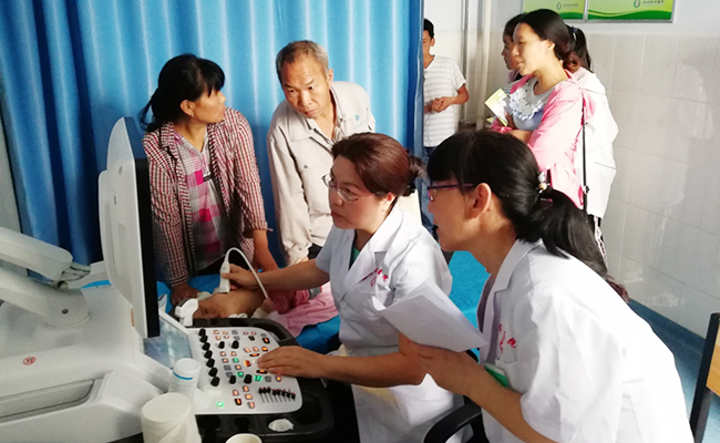 签约仪式后,张明奎、一附院心内科专家苗立夫随即开始专家义诊,一附院心脏超声专家王廉一主任为先天性心脏病疑似患儿作筛查确诊,累计接诊患者260余名,筛查疑似患儿28名,其中多属于复杂病例,需到北京做进一步检查。