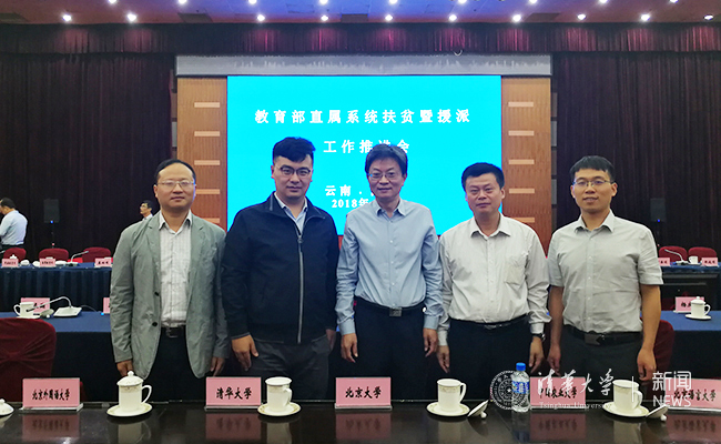 5月31日上午,教育部在昆明召开2018年滇西脱贫攻坚部际联系会议。教育部党组书记、部长陈宝生,云南省省长阮成发,国务院扶贫办副主任欧青平,国家开发银行副行长马欣出席会议并讲话。下午,教育部继续召开教育部直属系统扶贫暨援派工作推进会,陈宝生、欧青平出席会议并讲话。李一兵代表清华大学出席全天的会议。在下午的会议上,清华电机系教授、挂职新疆大学电气工程学院院长周远翔作为3位教育部援派挂职干部人才发言代表之一,就挂职工作进行发言。清华在南涧县挂职的两位青年教师金峰、沈正波参加了会议。