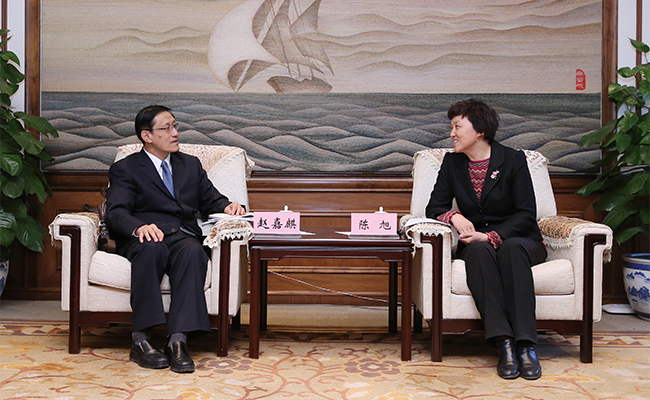 陈旭与赵嘉麒会谈。记者 张 宇 摄
