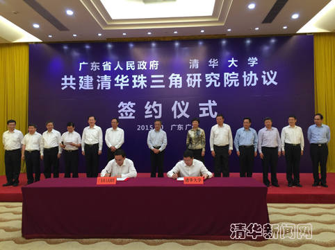 清华大学与广东省签署《共建清华珠三角研究院协议》。