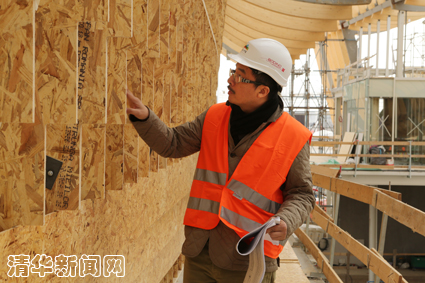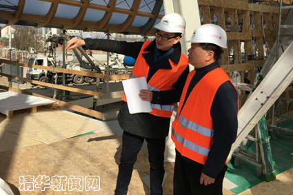2014年11月,中国馆地面施工开始。清华大学美术学院先后委派清华大学美术学院副院长苏丹、环境艺术设计系副教授陆轶辰、环境艺术设计系副教授汪建松、工业设计系周艳阳以及赵华森等多位中国馆设计项目组成员驻扎工地,现场指导工作。