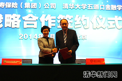 清华新闻网9月26日电 9月25日,清华大学五道口金融学院与中国人寿保险(集团)公司战略合作框架协议签字仪式在人寿广场举行。五道口金融学院副院长康以同、中国人寿副总裁崔兰琴代表双方签署了协议。