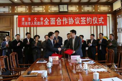 在仪式上,何辛幸首先对清华大学的支持表示感谢。他希望通过与清华的全面合作,借用清华的人才和科研优势,不断强化市校双方联系,拓宽校地合作的广度和深度,提升合作层次,促进河池经济和社会发展。