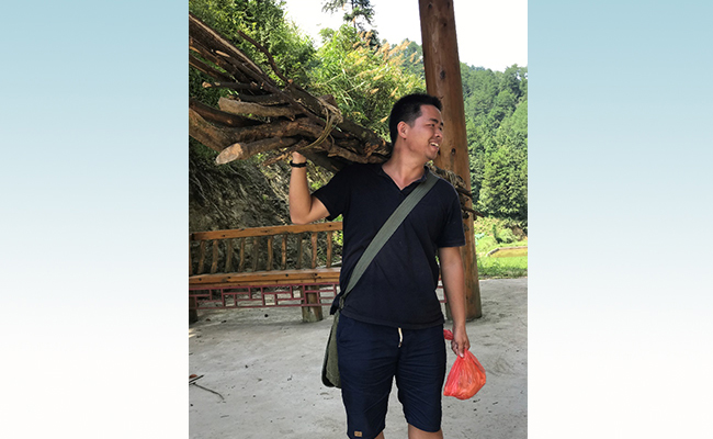 余宗洋帮忙扛柴火