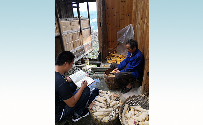 下一步就是挨家挨户的摸底。可是一板一眼地询问问题,老百姓可能也只是说些场面话。对此,余宗洋总结出自己的一套办法:“就是去做客,和老百姓们聊家常,许多问题就在这些交流中被了解到了。”热情好客是刻在苗族人骨子里的。每次走访,余宗洋还在门外,便能听到村民邀请他进屋吃饭的招呼声。往往一顿饭、几大杯糯米酒,便能聊上几个小时。
